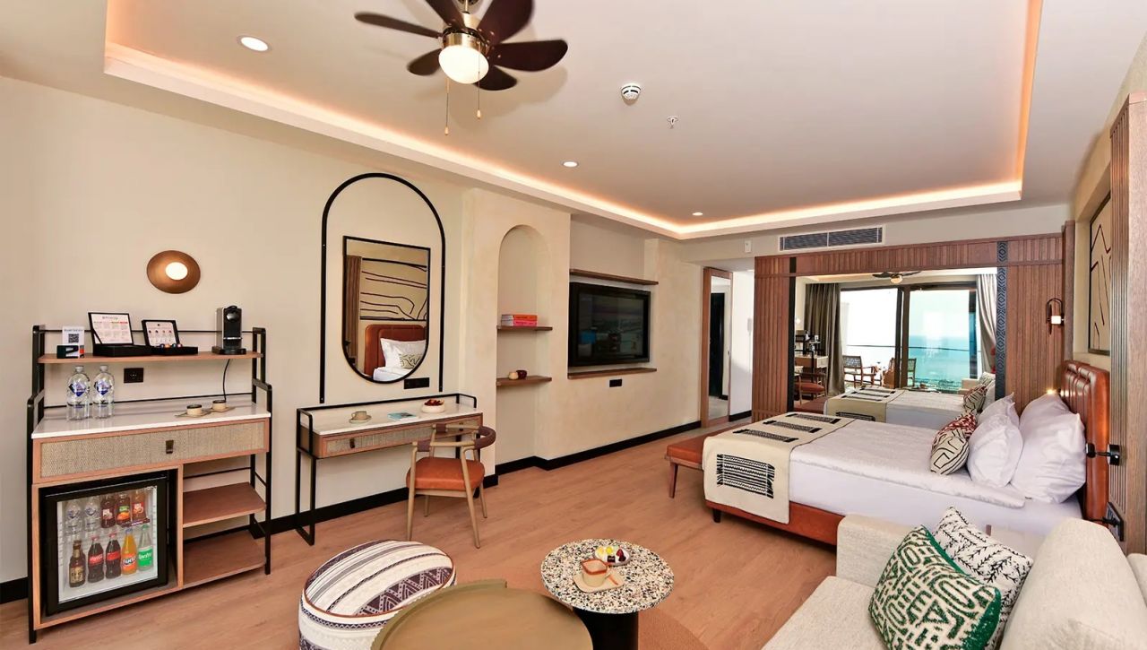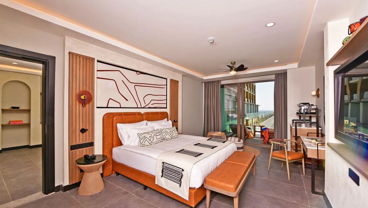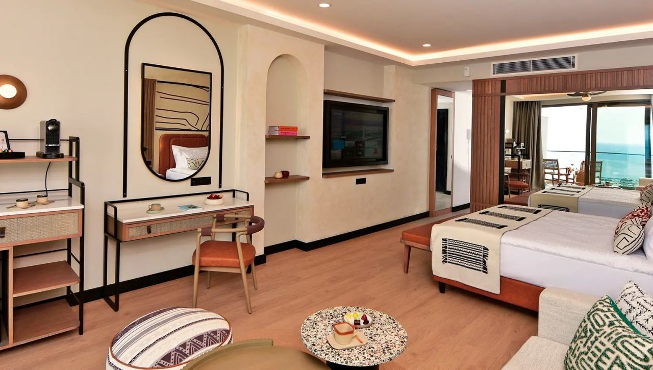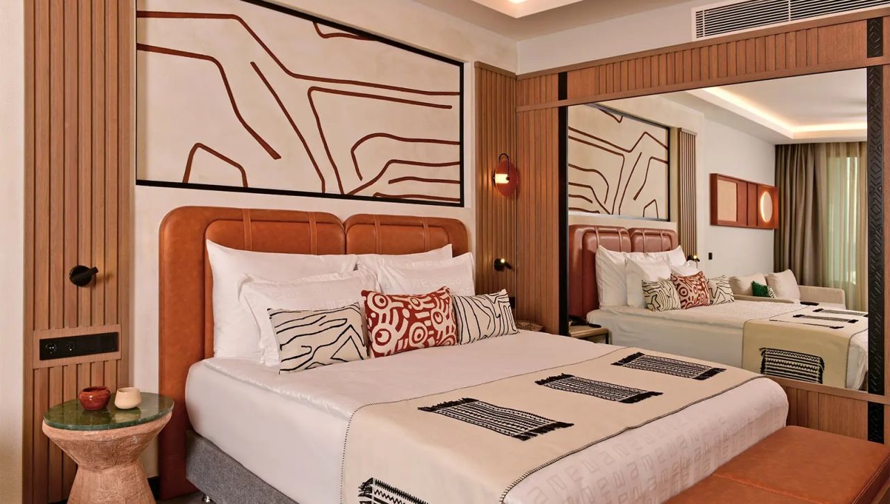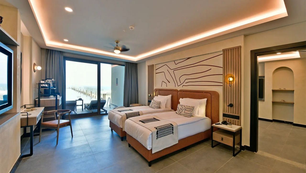 Pláž je vyzdobena etnickými vzory a nabízí pohodlný vstup do čistých vod Středozemního moře. V aquaparku najdete barevné tobogány a zábavné aktivity, které vám umožní prožít ty nejzajímavější chvíle. Bazény jsou neocenitelným místem odpočinku pro ty, kteří hledají pohodlí a klid.