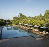 Layana se nachází přímo na ikonické pláži Long Beach, která je známá křišťálovou vodou, jemným pískem a západy slunce, které hrají všemi odstíny oranžové a růžové. Plážová zóna resortu je plná pohodlných lehátek, balijských postelí, stinných míst a perfektního servisu, který umožňuje hostům strávit celý den pod palmami v absolutní pohodě. Je to ideální prostor pro koupání, romantické procházky i tiché pozorování horizontu.