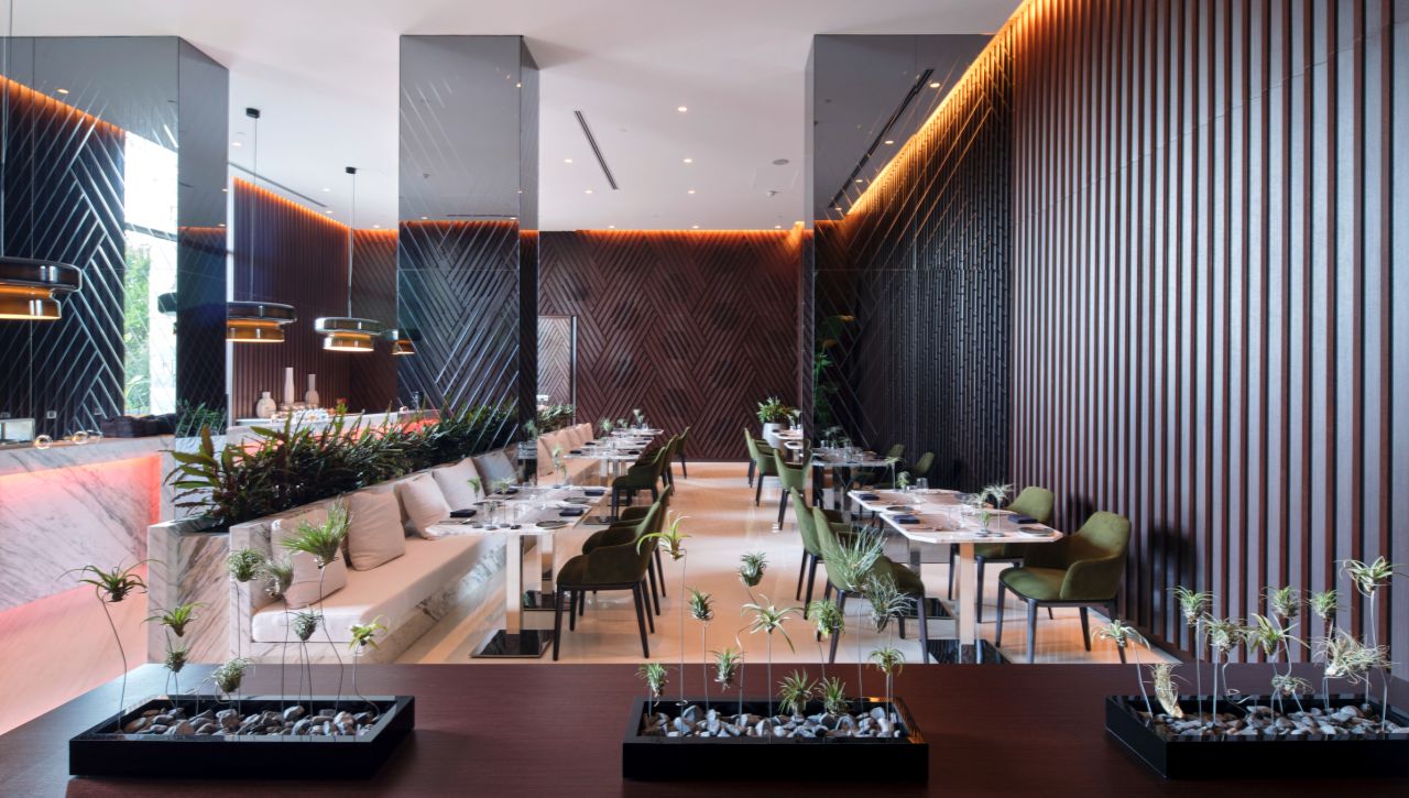 Resort je rájem pro gurmány. Kulinářská scéna zahrnuje restaurace vedené šéfkuchaři s mezinárodní prestiží, tematické koncepty i signature podniky, které spojují světové trendy s místními surovinami. Od sofistikované středomořské kuchyně přes výběrové mořské plody až po japonské speciality a prvotřídní gril – každý pokrm je prezentován s elegancí a estetickým citem. Pro milovníky sladkého je zde čokoládový butik dolce mare, vlastní pražírna kávy i 24hodinová Azure 24. Celý gastronomický svět doplňuje špičková sommelierská péče a koktejlové bary, kde se večery proměňují v živé, stylové momenty.