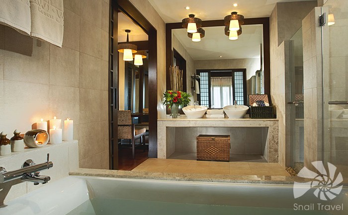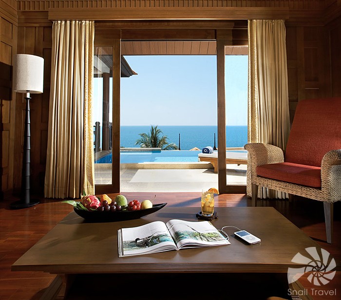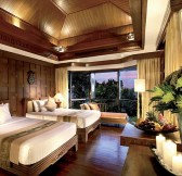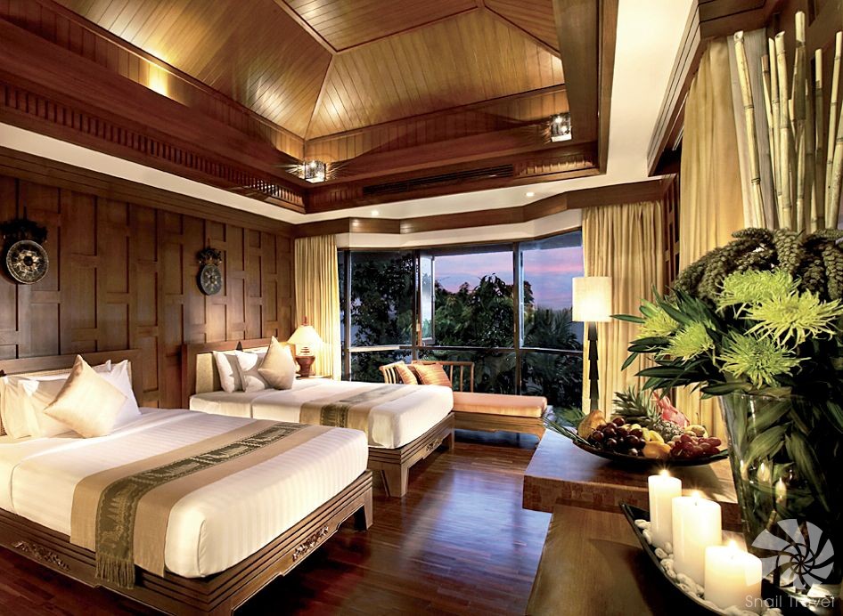 Pokoje, vilky a pavilony jsou navrženy v duchu thajské elegance, kde se dřevo, kámen a přírodní materiály spojují s moderními prvky a otevřeným prostorem. Každé ubytování má svůj vlastní charakter, ale všechny interiéry propojuje teplá barevná paleta, jemné detaily, prostorné terasy a výhledy na zahradu, moře nebo jezera. Hosté si mohou vybrat mezi vilami u pláže, pavilony na svahu s panoramaty nebo luxusními apartmány s přímým přístupem k bazénu. Soukromí, prostor a tropická atmosféra tvoří dohromady prostředí, které podporuje hlubokou relaxaci.